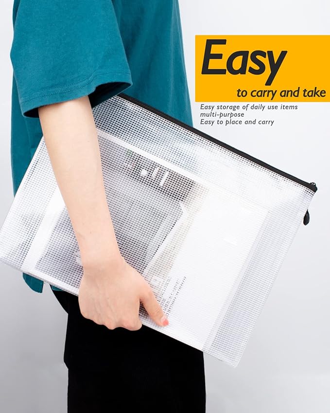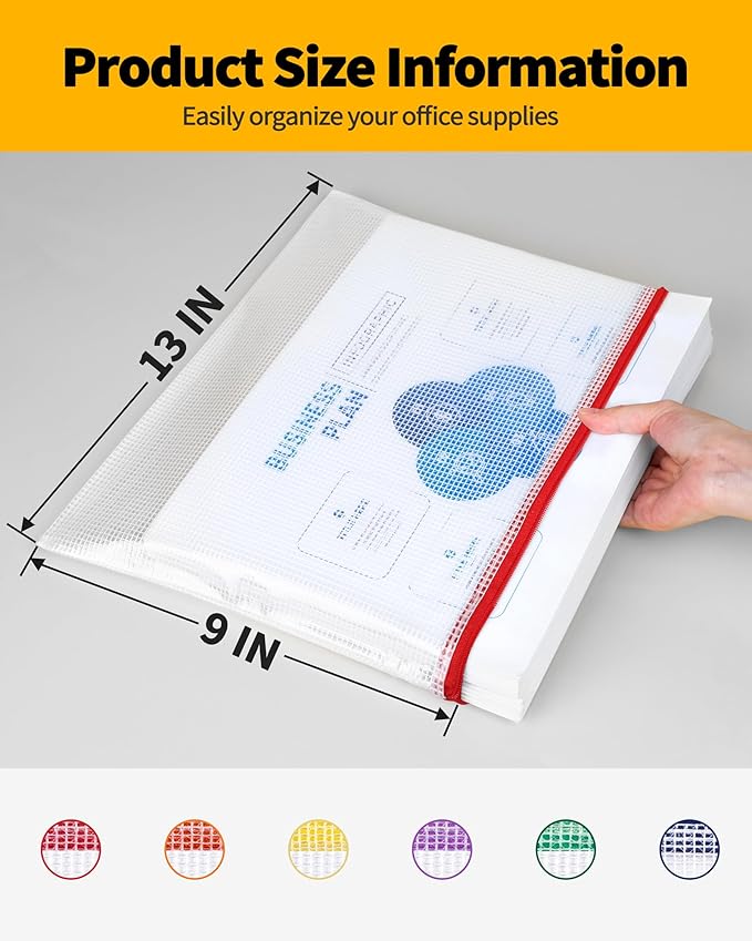SUNEE Plastic Mesh Zipper Pouch 9x13 in (6 Colors, 12 Packs),Extra Large Water-Resistant Zip Bag for School Office Supplies, Puzzles & Games Organizing Storage
