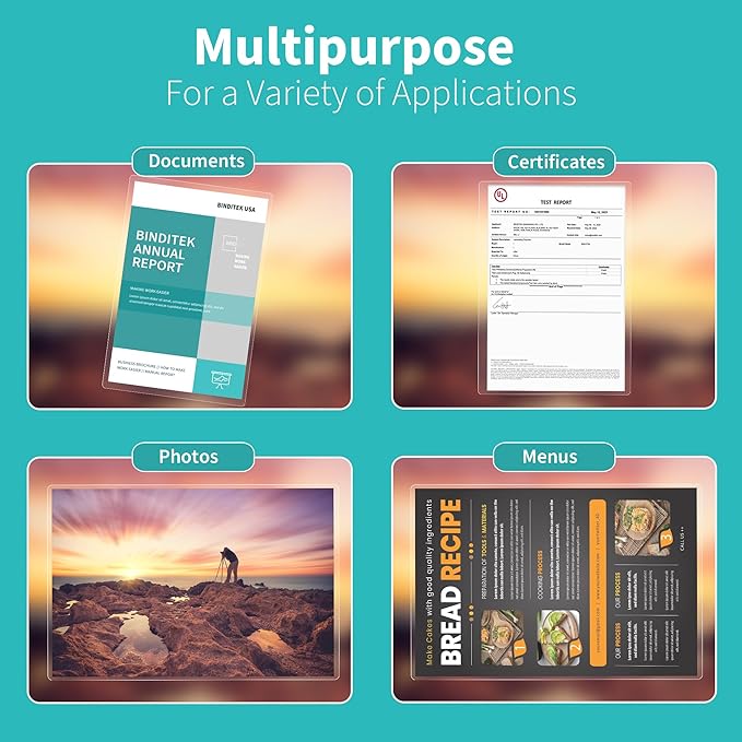 - 【High Transparency】 Made from top-quality PET material, these thermal laminating pouches deliver a crystal-clear, high-gloss finish, offering vibrant visibility for photos and documents. They protect against bends, creases, and dirt, with features like crease-proof, dirt-resistant, and anti-static for dependable, lasting document preservation.
