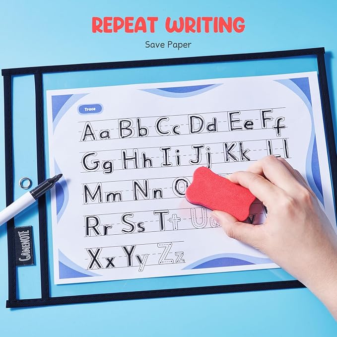 - Reusable : Dry erase pocket sleeve is a great way to have students utilize paper worksheets again and again without wasting paper. Save your time and money. Perfect for classrooms, restaurants, offices, art center, homeschool and more