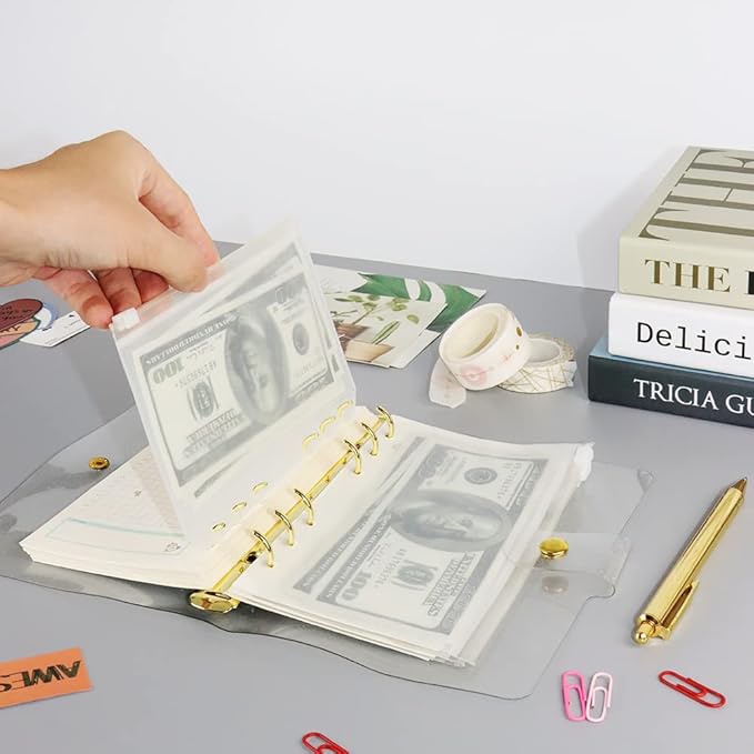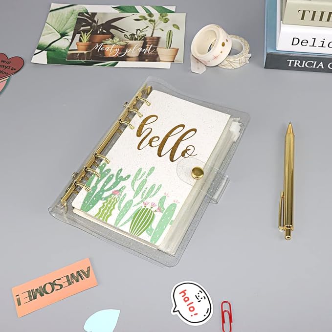 Glitter Powder PVC Binder Cover 6 Round Ring Binders Snap Button Closure Loose Leaf Folders Refillable Soft PVC Notebook Shell Protector (Gold 6 Rings, A6 Binder)