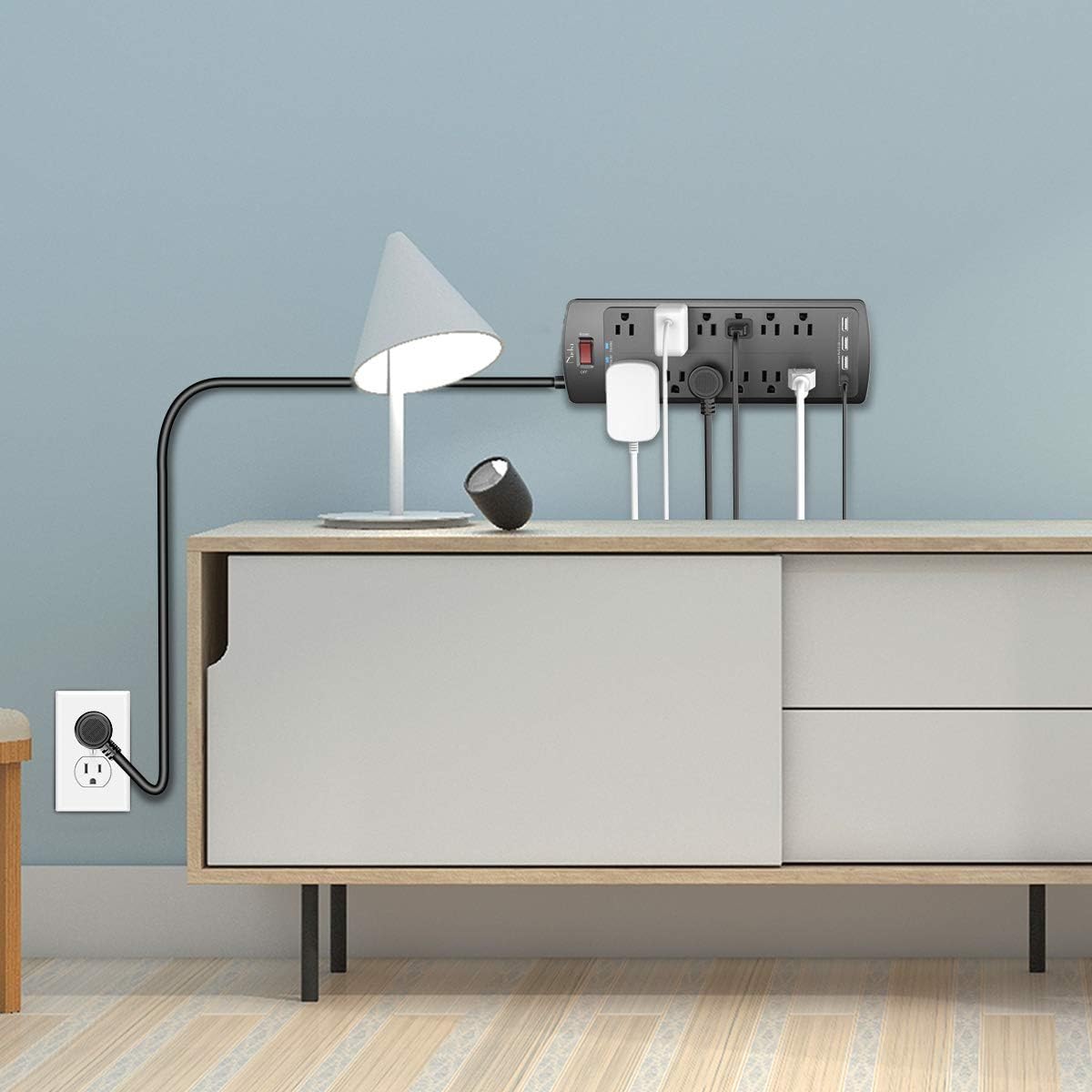 - 【Safety and Certificate】- ETL safety certified, with extension cord and other major components certified by UL. The over current protection switch limits the power strip's working current to certain setting, so it will not get hot during usage. Environmental protection and fire-resistance PC shell with flame retardant at 1382℉ makes it more durable and longer lifetime.