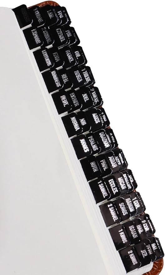 - Easy Installation: Tabs come with directions and a tab guide for perfect placement in your Bible; Each tab is pre-cut and self-adhesive so simply peel, align in your Bible, and stick!