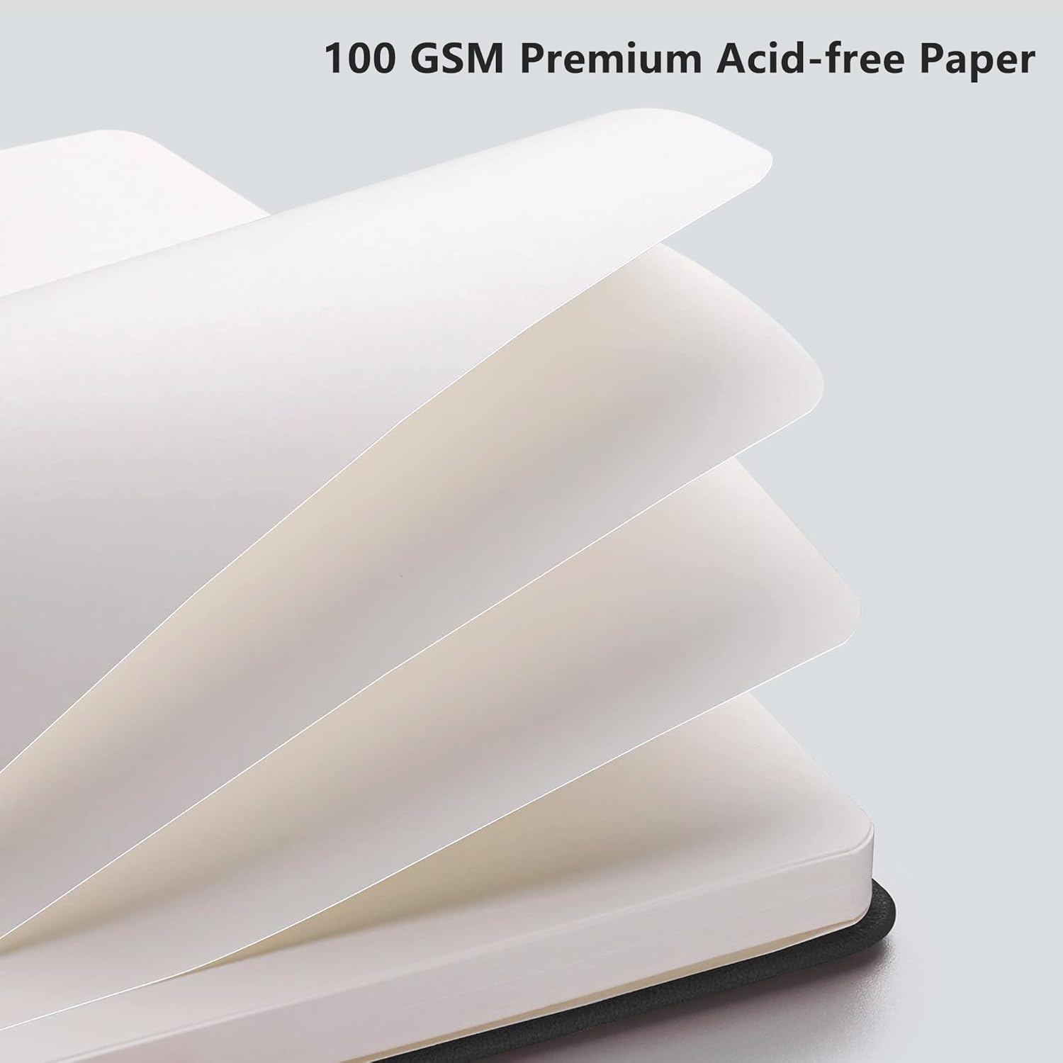 - 100 GSM PREMIUM PAPER: 100 GSM paper is thicker & sturdier, enduring the test of time. Perfect for jotting thoughts, ideas, or memories, our blank notebook keeps your words pristine. Use most pens, pencils, or markers with no ghosting or bleed-through