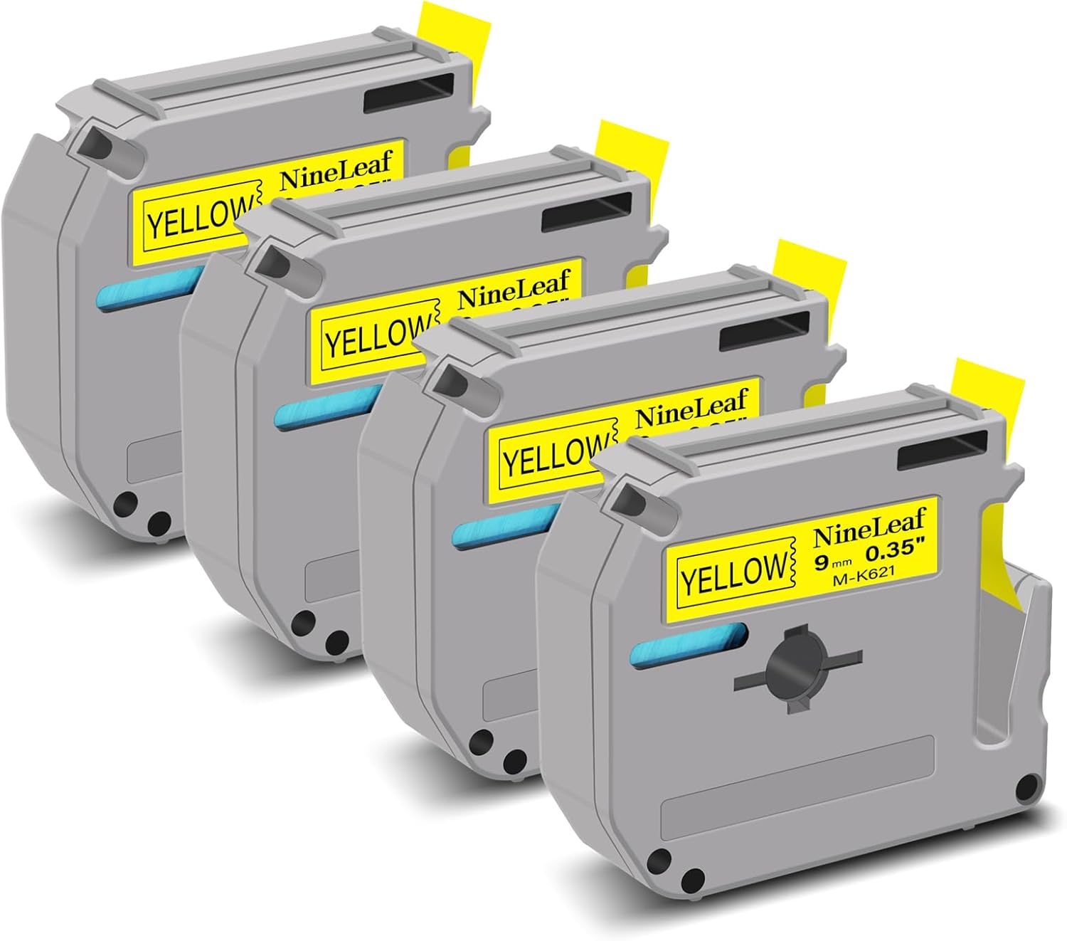 - NineLeaf 4 Pack Compatible for Brother P-touch Label Tape MK621 M-K621 M621 M-621 MK-621 Non-Laminated Label Tape, Color:(Black on Yellow), Length:8m(26.2ft), Width:9mm(0.35")