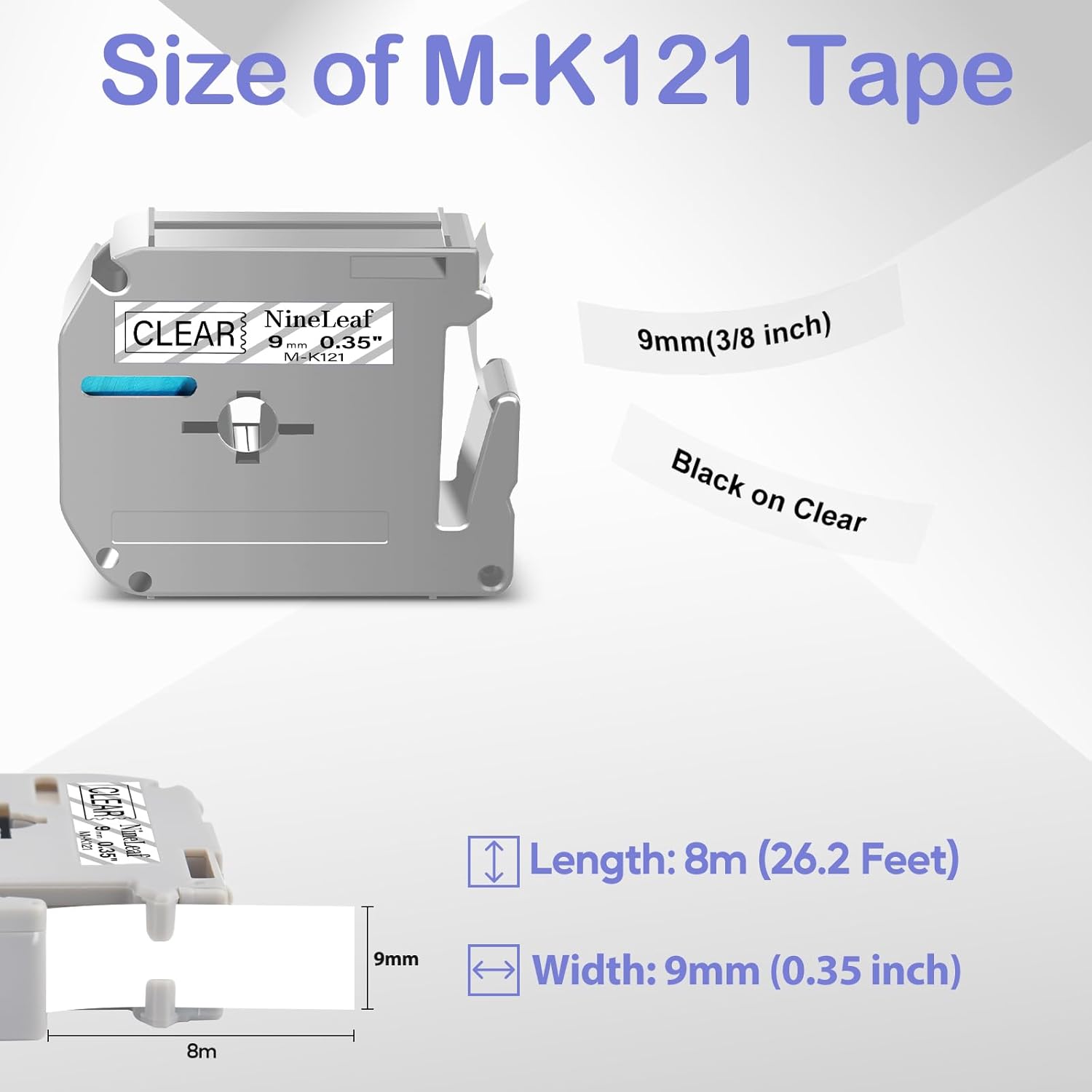 - NineLeaf 4 Pack Compatible for Brother P-touch Label Tape MK121 M-K121 M121 M-121 MK-121 Non-Laminated Label Tape, Color:(Black on Clear), Length:8m(26.2ft), Width:9mm(0.35")
