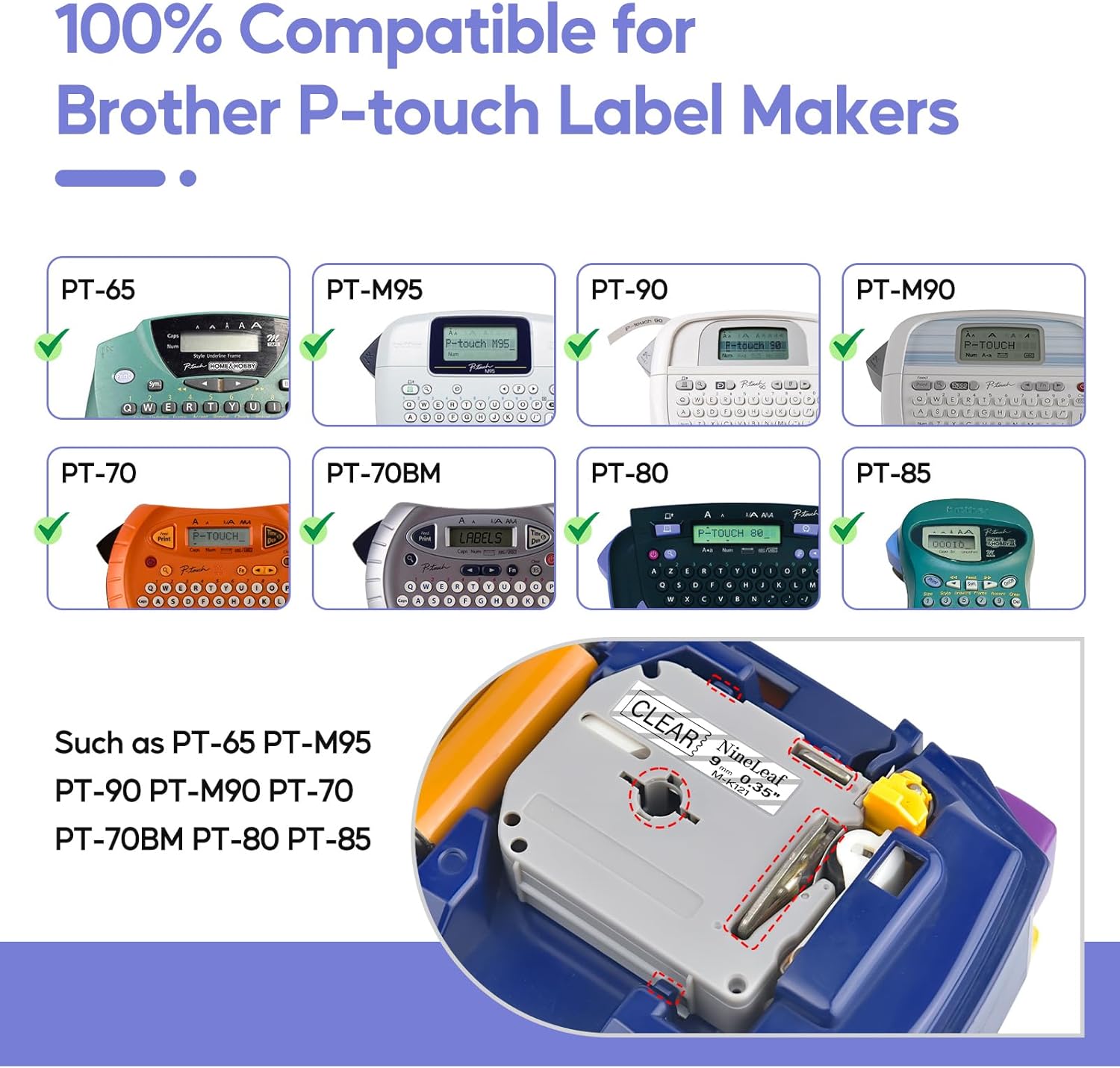 - Compatible for brother p-touch label makers: PT100, PT110, PT55BM, PT55S, PT65, PT65SB, PT65SCCP, PT65SL, PT65VP, PT70, PT70BBVP, PT70BM, PT70BMH, PT70HK, PT70HOL, PT70HOT, PT70SP, PT70SR, PT80, PT80SCCP, PT85, PT90