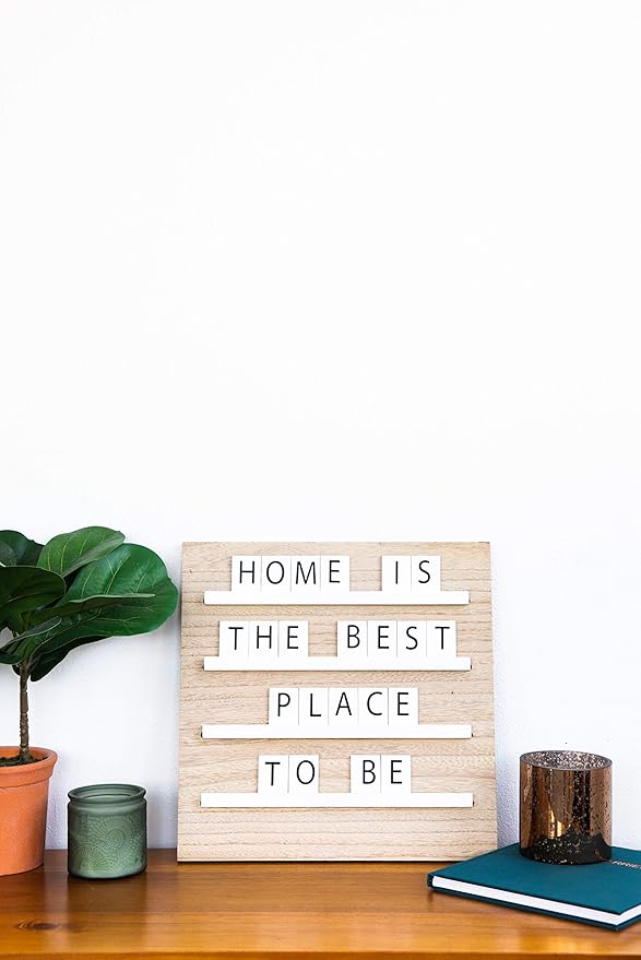 - Includes one unique letterboard white shelves, a sawtooth hanger and 95 white letter and symbol tiles, symbols include "#," "At" And "&"