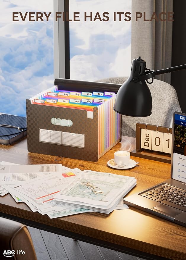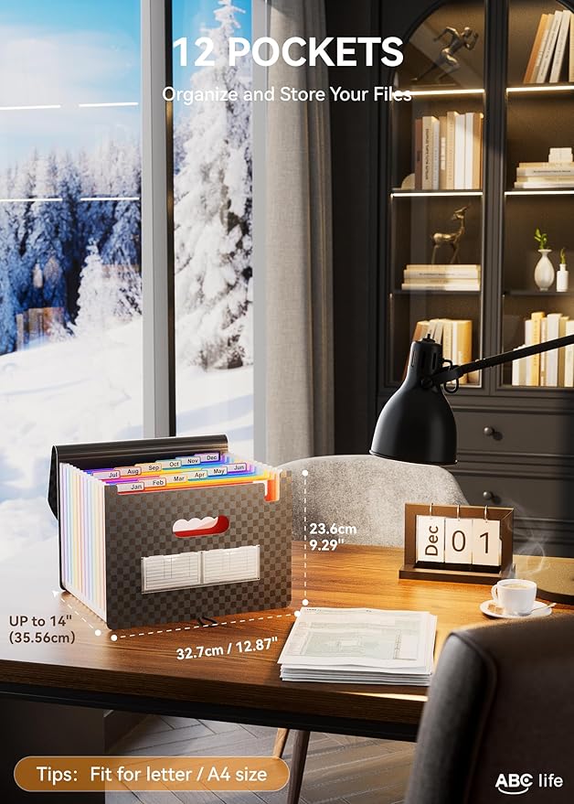 - ✅【12 POCKETS MONTHLY FILE ORGANIZER】ABC life 12 pockets Accordian File Organizer suitable for filing tax and storing important family documents. Product size is 13 "x 9.4"x 14", which can be used to store plenty of Letter/A4 size files.