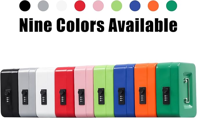 KYODOLED Cash Box with Combination Lock,Safe Metal Box for Money,Storage Lock Box with Money Tray,7.87"x 6.30"x 3.54" Green Medium