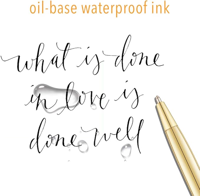 - 【GOLD BALLPOINT PENS】: Made of metal, with quality surface finishing will never be tarnished, High quality ink guarantee effortless smooth writing experience on work, nice weight to grip with well balance, sleekness and slimness really feels good in the hand.