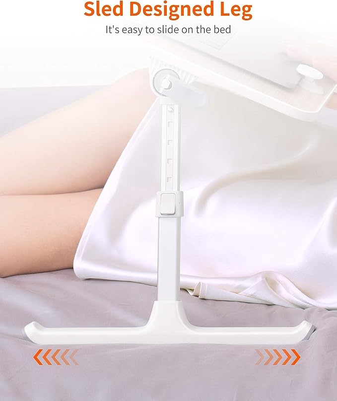 - Ergonomic Design Bed Desk - Soft wrist rest pad provides your wrist a comfortable place. The retractable blocker protects your computer from falling down. 5 adjustable heights(9.4"-12.6") and 4 adjustable angles (0-36°) provide you a more comfortable posture and avoid back & neck pain.