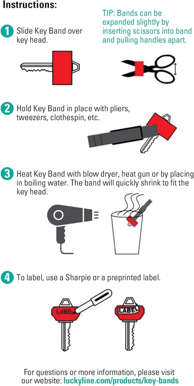 - 🌈 Key Bands shrink to form-fit the key head providing a writable surface