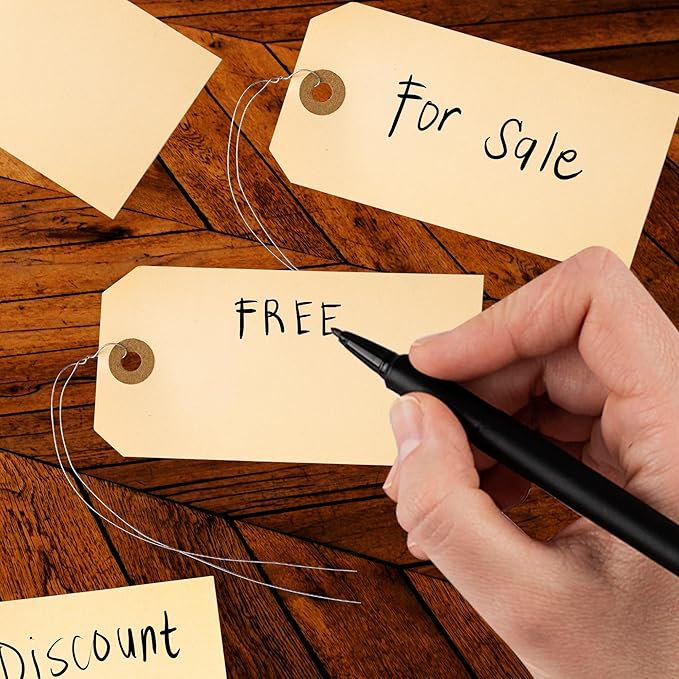 Perco Manila Shipping Tags #5 4 3/4" x 2 3/8" (12 x 6 cm) with Metal Wire Pack of 100