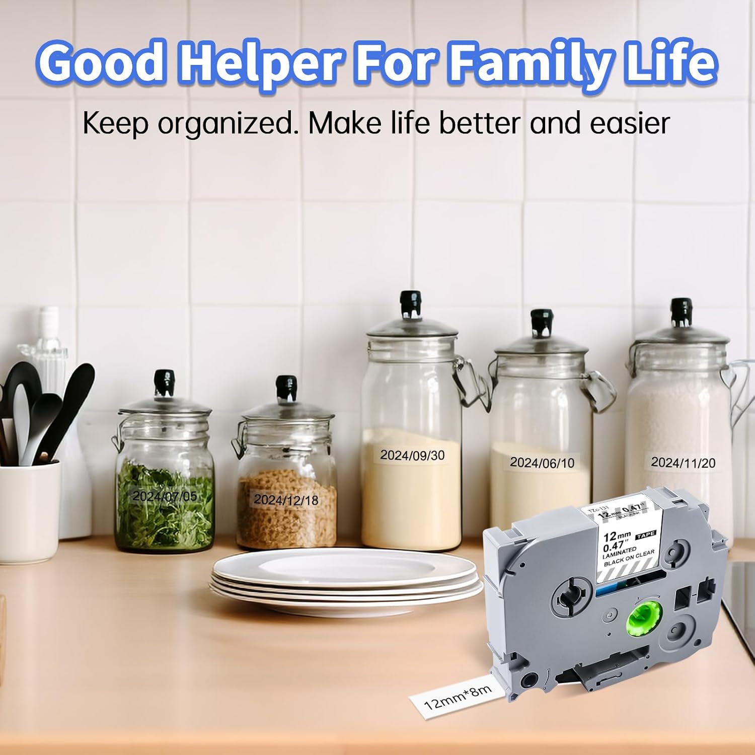 - Lasting & Practical Laminated Tape: Compatible with Brother TZ tape 12mm 0.47 laminated clear is enduring, self-adhesive and print clearly. Resistant to water, oil, fade, abrasion, chemical, heat and cold.