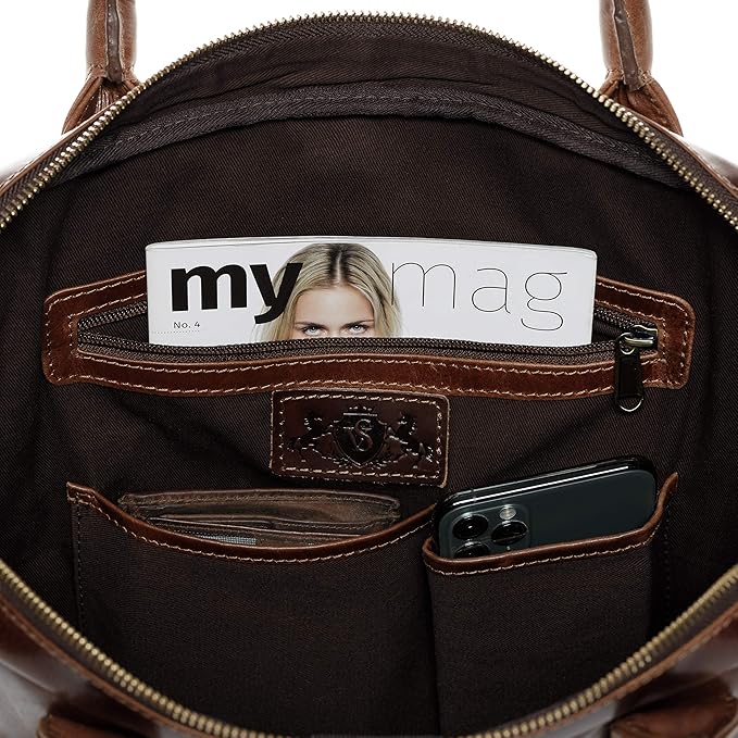 SID & VAIN laptop bag BOSTON Large business office work bag laptop case real leather briefcase leather bag Unisex brown