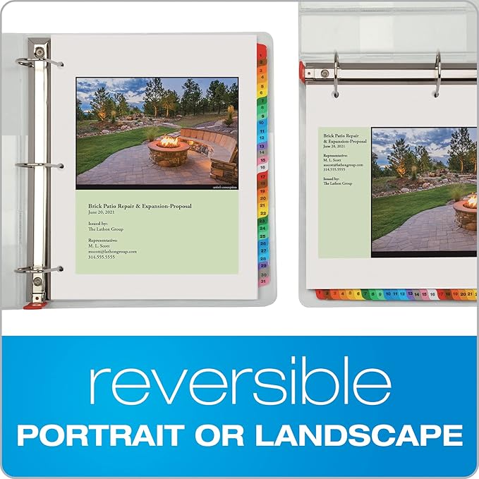 - Flip the dual formatted tabs to use in vertical or landscape format; organize your binder to fit your needs; create ideal indexing for school, home or office