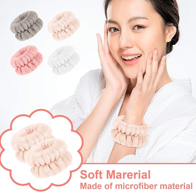 - Wrist Bands for Washing Face Set: there are 4 pairs of microfiber wristbands in different colors, you can wear these cleansing cuffs in line with your headband to reduce and prevent liquid from spreading and spilling down to your arms when washing