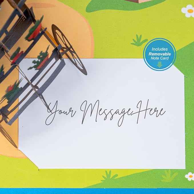 Paper Love 3D Flower Wagon Pop Up Card, Gift for Birthday, Wedding, Anniversary, Mothers Day, Thank You, Get Well, All Occasion or Just Because - 5" x 7" Cover - Includes Envelope and Note Tag