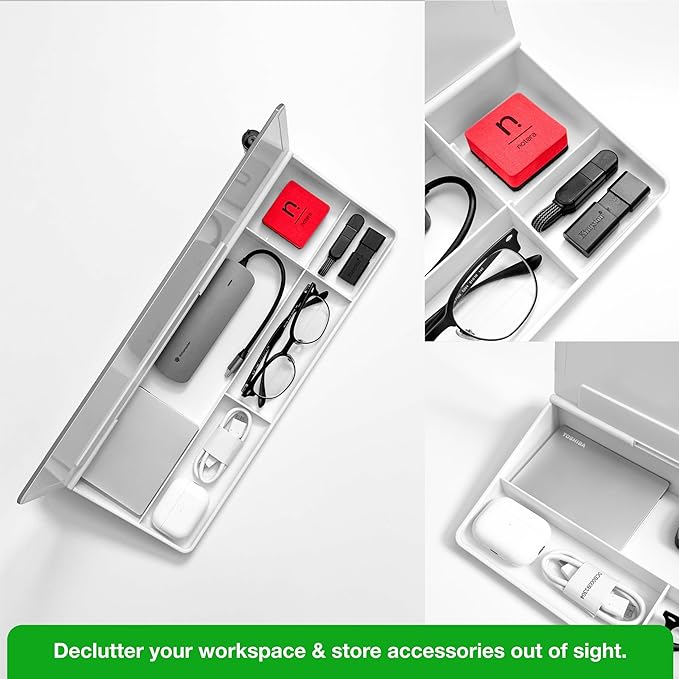 - ✅ ESCAPE PROCRASTINATION - Declutter your desk, regain focus and banish stress with the Notera desk buddy. Store office accessories in the handy internal compartment, use the dry erase desktop whiteboard for notes and the integrated device slot to prop up your mobile devices.