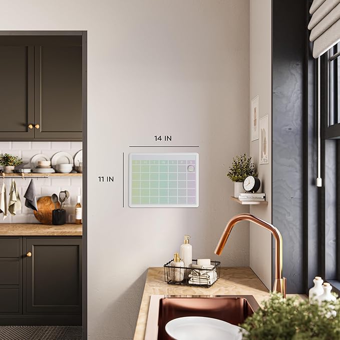 - PLAN, CREATE, COLLABORATE: Enhance your workspace and boost your productivity with this modern 14"x11" magnetic dry erase calendar board; this modern white framed ombre whiteboard adds functionality and style to any classroom, office or home decor