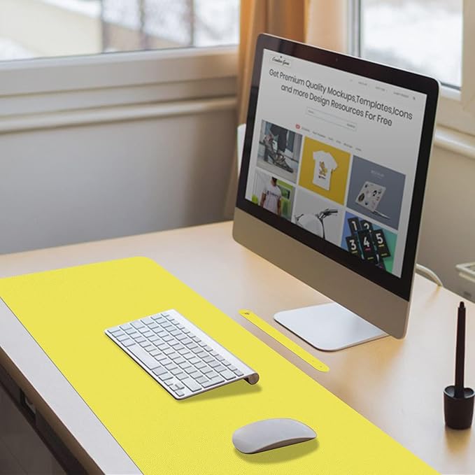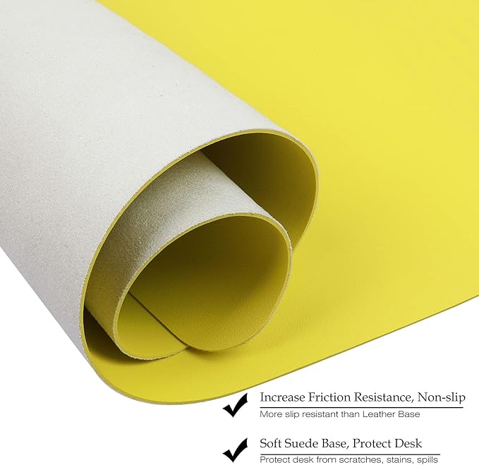Boutilon Leather Desk Pad 30" x14",Non-Slip Mouse Pad,Office Desk Mat,Waterprooft PU Leather Desk Blotter,Desk Pad Protector,Desk Writing Pad for Home Office Decor (M-Lemon)