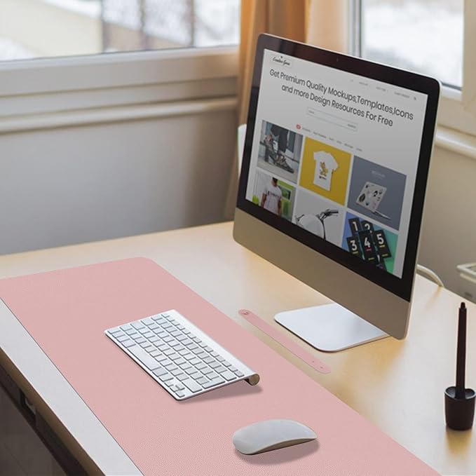 Boutilon Leather Desk Pad 30" x14",Non-Slip Mouse Pad,Office Desk Mat,Waterprooft PU Leather Desk Blotter,Desk Pad Protector,Desk Writing Pad for Home Office Decor (M-Pink)