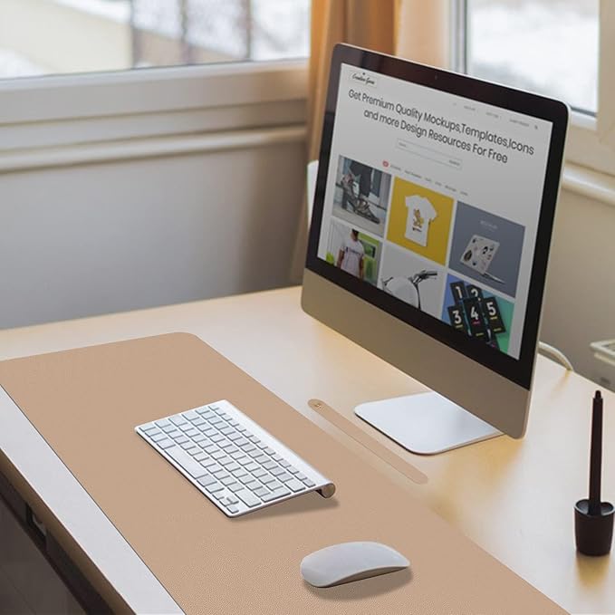 Boutilon Leather Desk Pad 30" x14",Non-Slip Mouse Pad,Office Desk Mat,Waterprooft PU Leather Desk Blotter,Desk Pad Protector,Desk Writing Pad for Home Office Decor (M-Beige)