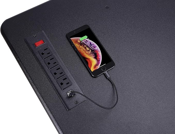 - POWER SUPPLY ON THE DESKTOP: Includes 4 UL approved AC outlets plus two USB 2.0 charging ports and an extra long 10' power cord.