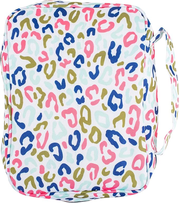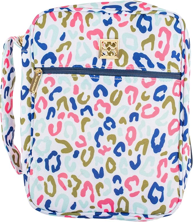- Wild Side Zippered Bible Cover Case features a front and interior pocket, wrap around zippered closure, and handle for carrying on the side