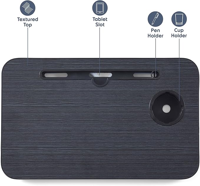 - Perfect Size: This laptop desk, measuring 11.75"D x 19"W x 7"H, is ideal for accommodating all kinds of books, tablets, and laptops up to 17 inches - a great gift for anyone seeking a comfortable and convenient workspace, wherever they may be.