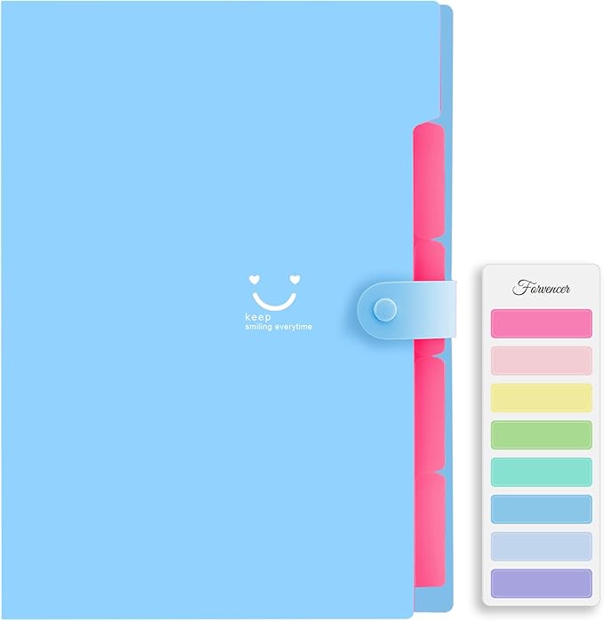 Forvencer Accordion File Organizer, Letter Size, 5 Pocket Expanding File Folder, Cute File Folder with Labels, Portable File Organizer for School Office Supplies, Folders for Documents, Blue