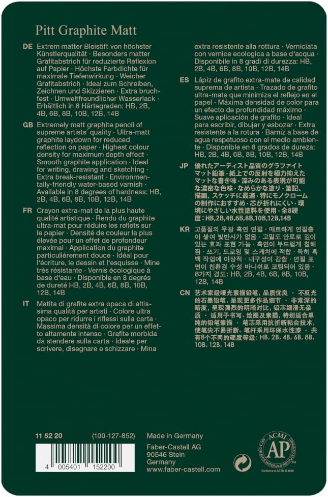 - MADE FROM REFORESTED WOOD - Faber-Castell pencils are proudly made with carbon neutral production and using reforested wood from FSC certified sustainable forests. Faber-Castell Pitt graphite pencils are made in Germany and features an environment friendly water-based varnish