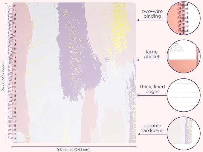 - INTERIOR POCKET: Features a durable hardcover with a pretty brush stroke paint design and a double sided storage pocket to keep loose notes organized