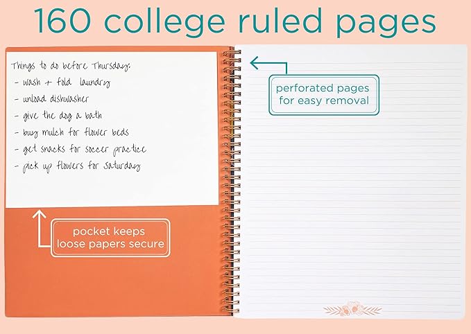 - INCLUDES 160 PAGES: Spiral notebook includes 160 high-quality, lined pages that withstand ink bleed-through; pages feature college ruled lines with a perforated edge to easily take to-dos, notes, and reminders on-the-go