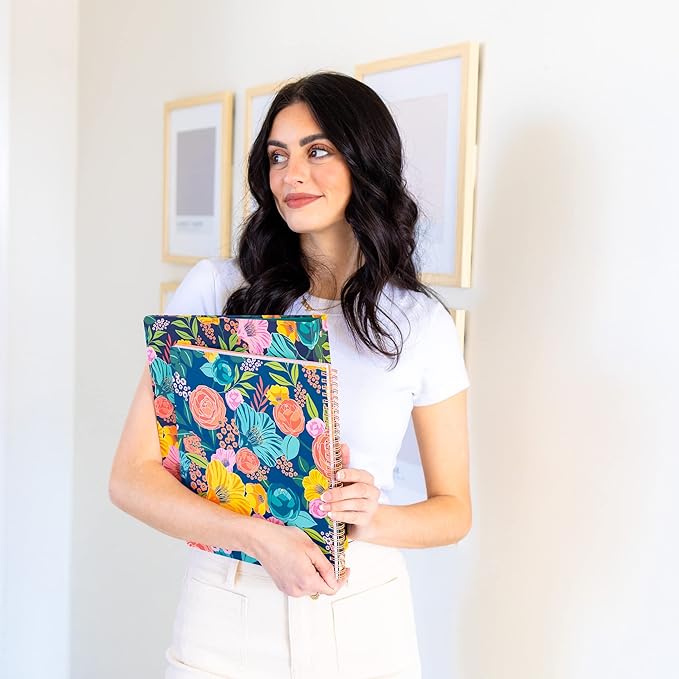 Steel Mill & Co Cute Large Spiral Notebook College Ruled, 11" x 9.5" with Durable Hardcover and 160 Lined Pages, Garden Blooms (Navy)