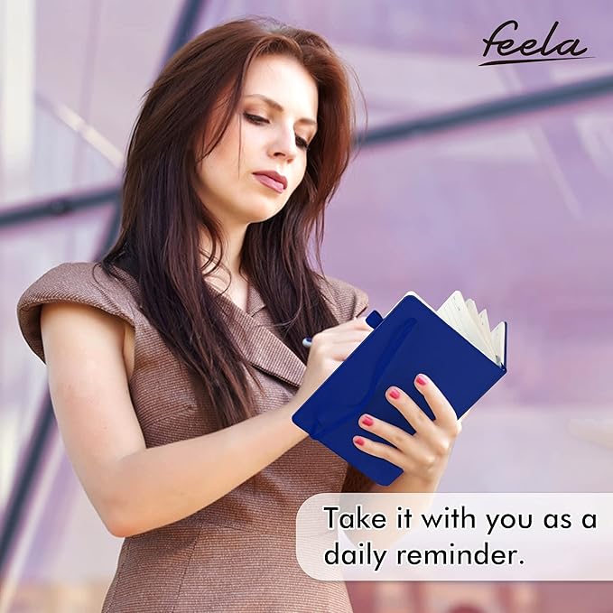 - Feela 5 Pack Classic Ruled Notebooks contains 5 classic navy ruled sturdy cover notebooks and 5 Black Retractable Pens. Each of the notebooks measures 8.3” x 5.1”, which is perfect to carry and easily held by young girls and boys. These black cute pens are customized to be placed in the pen holder, which is pretty convenient.