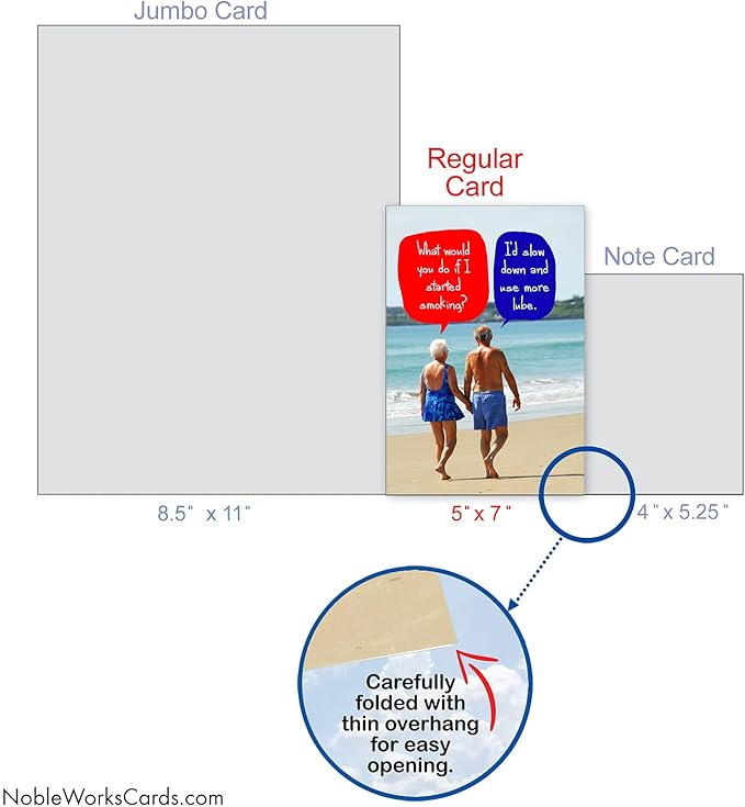 - CARD SIZE - Receive 1, regular sized notecard with 5x7 Inch envelope. We offer funny cards that come either blank or greeted inside, so be sure to review all product photos before purchasing.