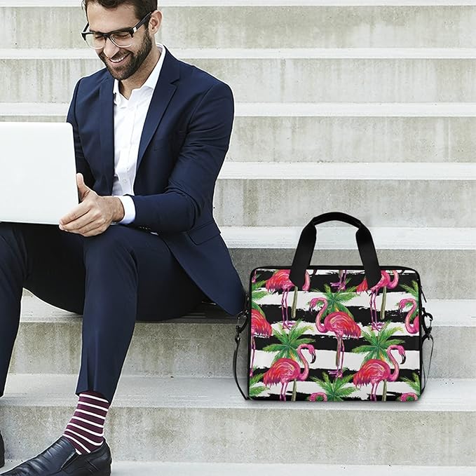 Pink Flamingo Palms Laptop Messenger Bag Case Sleeve Crossbody Briefcase Women