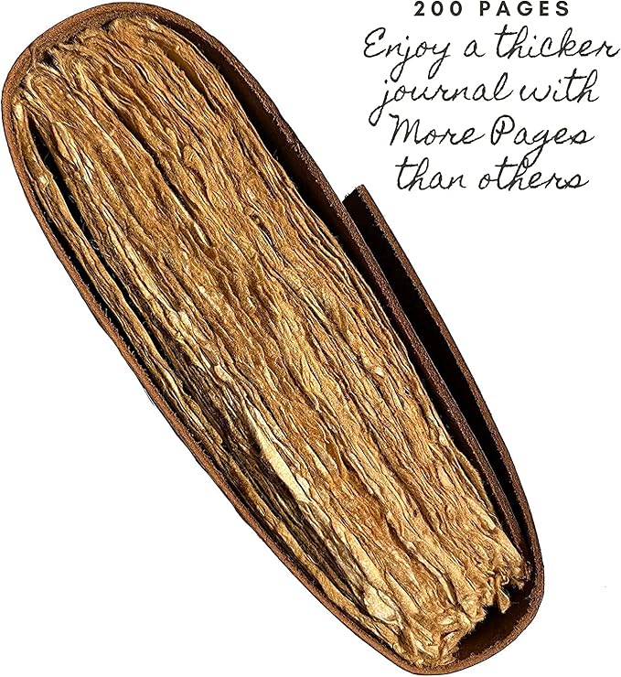 - ECO-FRIENDLY BY NATURE: When we were designing this journal, we were seriously concerned about its environmental effects. So, we decided to use only 200 pages/100 sheets of handmade non-refillable deckle edge paper that is thick enough to withstand any type of pen. Our paper is acid free and no trees were harmed in its making.