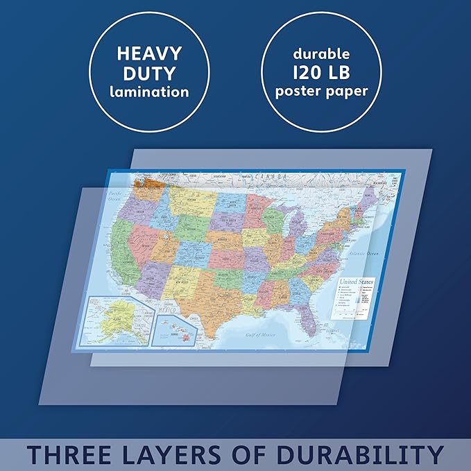 2 Pack - Laminated World Map Poster & USA Map Set - Equal Earth world map design shows continents at true relative size - US Map 18” x 29”