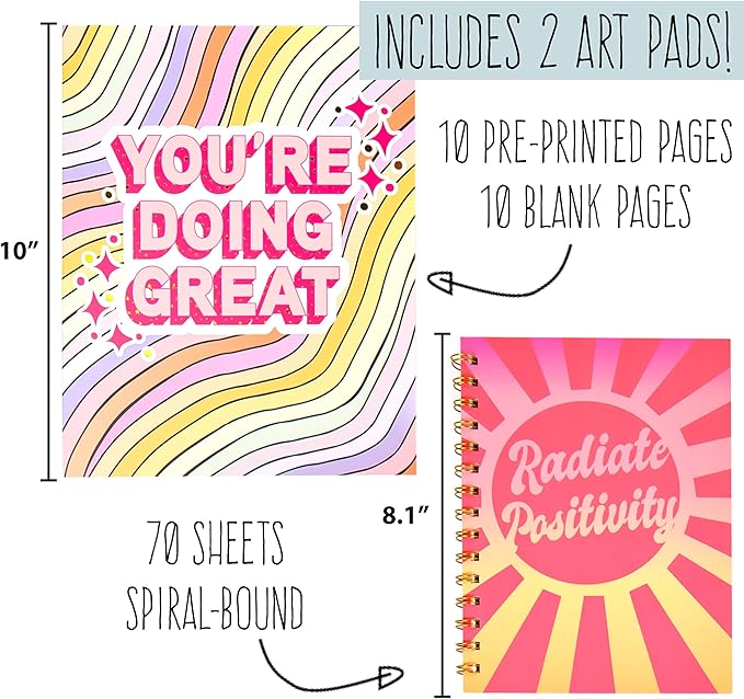 - SPIRAL-BOUND JOURNAL: Follow your heart as you doodle, design & write what’s on your mind! The included hardcover, spiral-bound journal has 70 blank pages for you to express yourself freely!