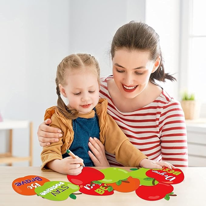 - Assorted Sayings Cutouts: Including 45pcs colorful apples positive sayings cutouts in 9 designs, and 5 sheets of glue points. Enough quantity and designs for you to DIY decorating.