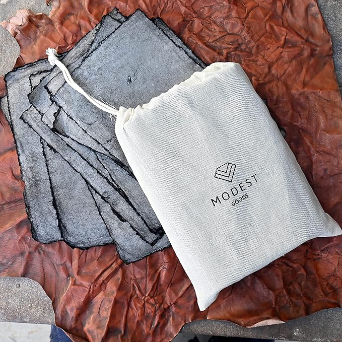 Vintage Black Leather Journal - 200 Pages Gray Deckle Edge Rustic Paper, Unlined Pages Book of Shadows, Grimoire, Junk Notebook, Fantasy Medieval Gifts, Sketchbook, Scrapbook (Raven Black, 12"x9")