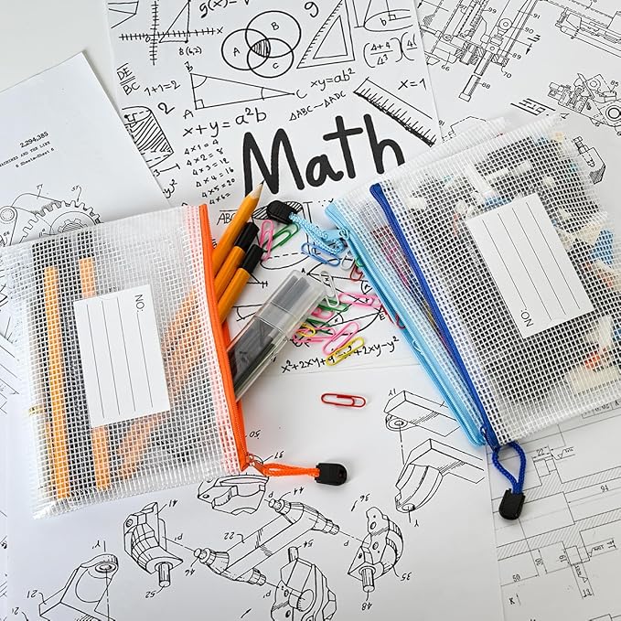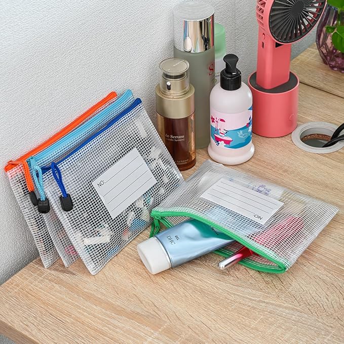 - 12Pcs Mesh zipper bags with label pocket, B6 size 7.6x5.3 inch. Widely used in Office Home Hospital and Travel. Great zipper file bags, board game storage bags, pencils pouches, puzzles bags, cross stitch projects bags or keeping various craft projects organized. These mesh bags could meet your needs in all ways