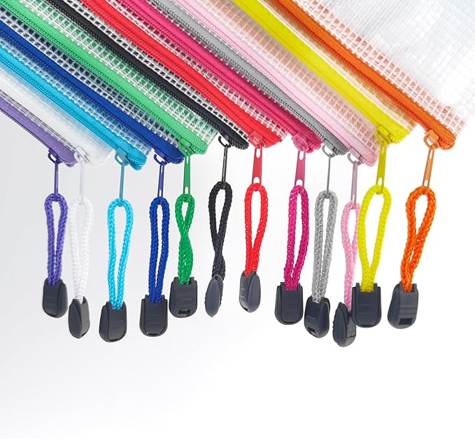 - 12Pcs Mesh zipper bags with label pocket, B4 size 15x11 inch. Widely used in Office Home Hospital and Travel. Great zipper file bags, board game storage bags, pencils pouches, puzzles bags, cross stitch projects bags or keeping various craft projects organized. These mesh bags could meet your needs in all ways