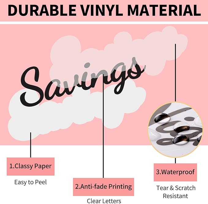 - DURABLE VINYL MATERIAL: The budget envelope labels are made of transparent vinyl PVC material, waterproof and tear-proof, protect labels from accidental spills, dust, or drops and can be used for a long time. With strong self-adhesive glue these vinyl decals can be applied to any smooth surfaces directly and tightly.