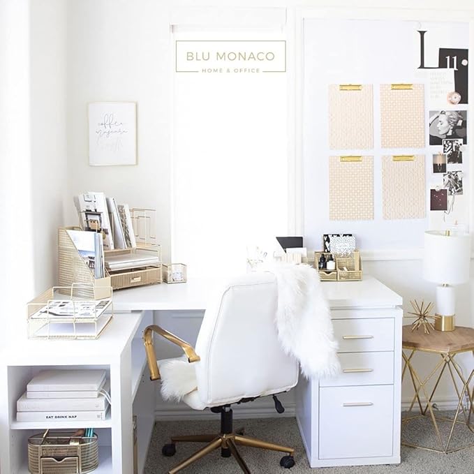 BLU MONACO Gold Desk Accessories and Workspace, Desktop Organizer - Cute File Organizer for Desk and Drawer Storage for Office Supplies, Paper, Device and Folders - File Holder