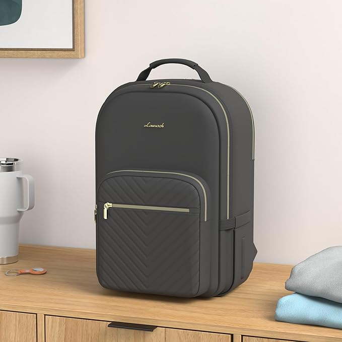 - 💯【Upgraded Laptop Backpack Women】: Classic V-shaped embroidery thread. Upgraded double LOVEVOOK no-slip metal zippers,water resistant Nylon fabric with polyester lining, ensures long lasting usage. Total of 4 compartments and 16 pockets for your computer,A4 folder,bottles,umbrellas,clothes,work supplies,college supplies and travel essentials.Dimensions: 12"L 17"H 7.5"D, Weight: 1.7lbs.