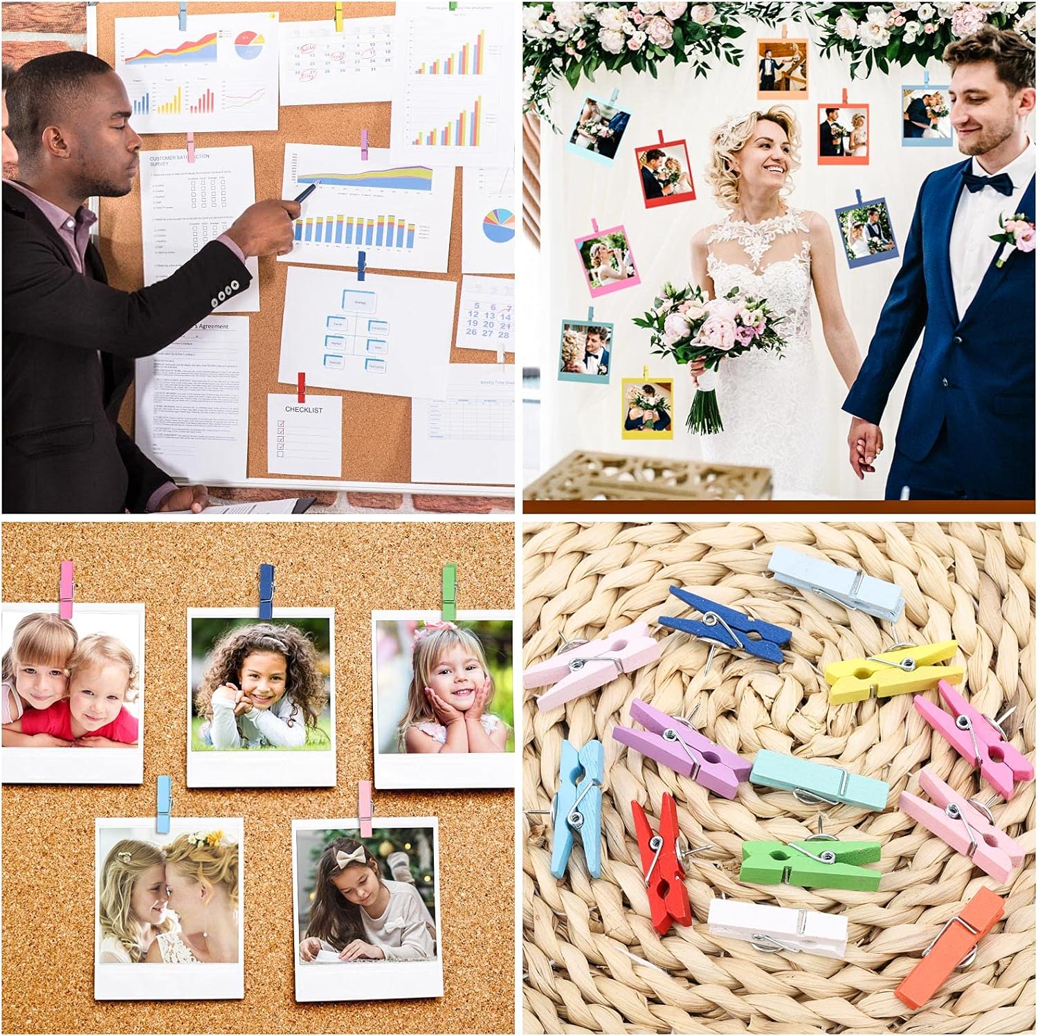 100Pcs Push Pin with Wooden Clips Tacks for Cork Board Artwork for Bulletin Board Crafts Arts Projects Photo Supplies(Colorful)