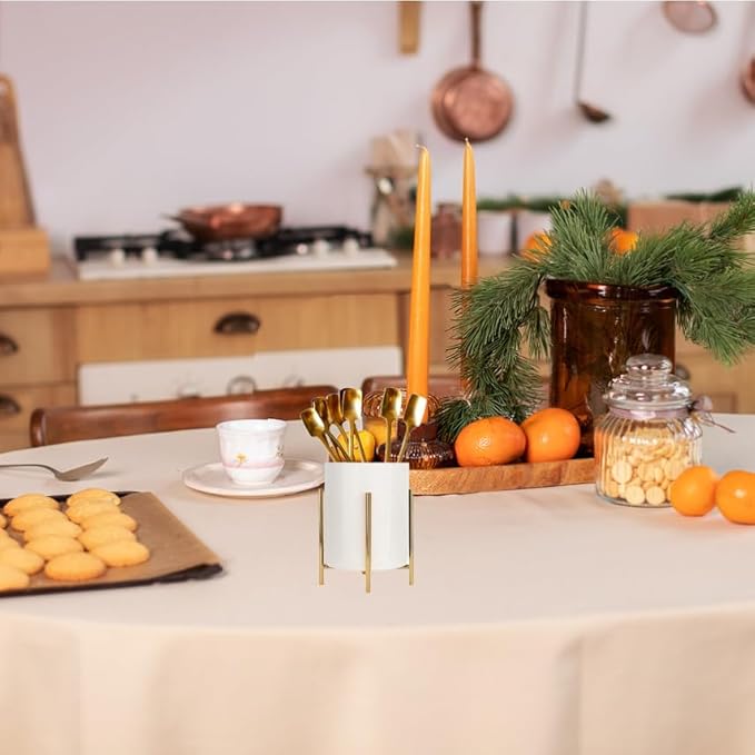 Gold pencil cup Sturdy metal frame with white ceramic pen holder For desks and kitchen appliance holders